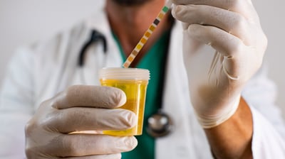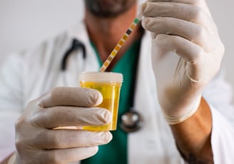 Busca la presencia de albúmina, una proteína que puede aparecer en la orina cuando los riñones están dañados. También se puede medir la creatinina en la orina.
